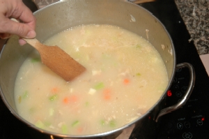 A word about stockpots: I made this soup the first few years in a cheesey 'salt and pepper porcelain'